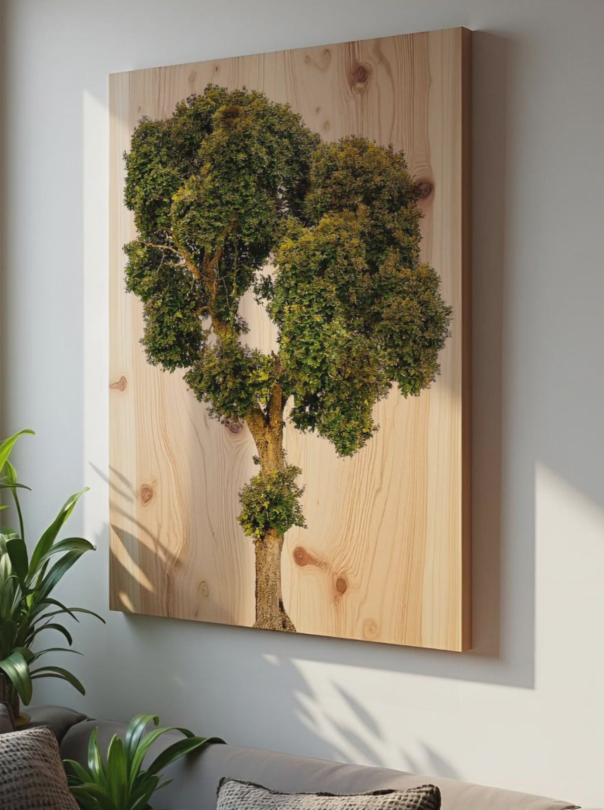 Stell dir vor, du spazierst durch einen stillen Wald, die Luft duftet nach frischem Holz und feuchtem Moos. Ein gewaltiger Baum ragt vor dir auf – seine mächtige Krone breitet sich aus, als würde sie den Himmel berühren. Jeder Ast, jedes Blatt erzählt von Jahren des Wachstums, von Stürmen, die er überstanden hat, und von der unbändigen Kraft der Natur. Dieses Holzbild bringt die pure Schönheit der Natur direkt in dein Zuhause – ein Symbol für Ruhe, Beständigkeit und die tiefe Verbundenheit mit der Erde. Perfekt für eine stilvolle Wandgestaltung mit Holzbildern, die Natürlichkeit und Eleganz vereint.