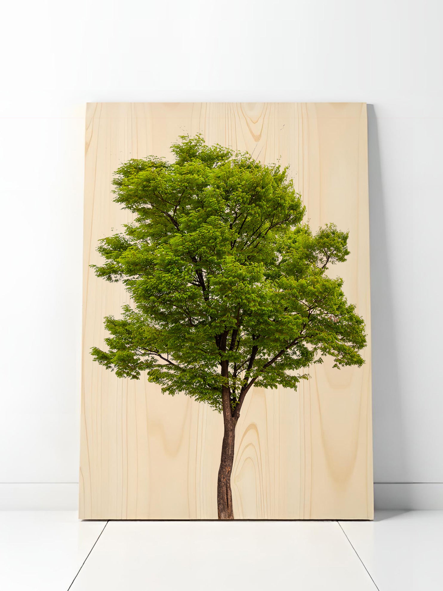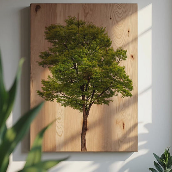 Wie ein stiller Wächter steht der Baum in seiner vollen Pracht – verwurzelt, kraftvoll, voller Leben. Seine Äste strecken sich dem Licht entgegen, während das zarte Grün im sanften Wind flüstert. Dieses Holzbild verkörpert die tiefe Verbindung zur Natur und bringt ihre beruhigende Energie direkt in dein Zuhause. Die warme Maserung des Holzes verleiht dem Motiv eine organische Tiefe, die jeden Raum mit natürlicher Ästhetik erfüllt. Perfekt für alle, die sich ein Stück lebendige Natur als Wandkunst wünschen.